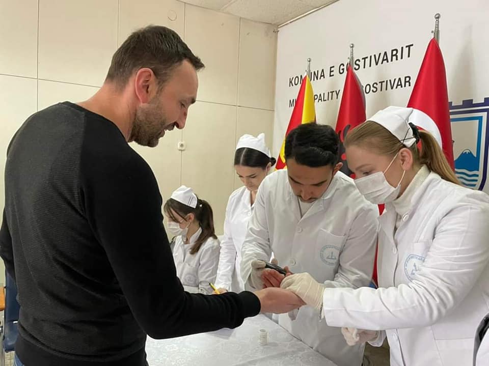 Gostivar Belediyesi’ndeki okullarda gerçekleştirilen taramadan (screening) sonra, “Gostivar” Sağlık Meslek Lisesi’nden olan öğrenci ve öğretmenler, Gostivar Belediyesi’nde çalışanlara kandaki şeker oranı ve kan basıncını ölçme etkinliklerini uyguladılar. Bu etkinlik, kandaki şeker oranını ve kan basıncını erken tespit etme ve risklerine karşı önlemini alma amaçlı gerçekleştirilmiştir. Yerel yönetim olarak, çok verimli etkinliği gerçekleştirdiklerinden dolayı kendilerine Teşekkür Belgeleri tevdih ettik.